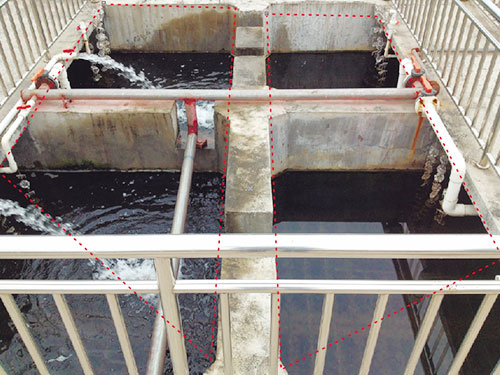 的溶解氧,以達(dá)到生化處理的目的。好氧池空氣由風(fēng)機(jī)提供,池內(nèi)采用新型半軟性生物填料,該填料表面積比大,使用壽命長(zhǎng),易掛膜,耐腐蝕,池底采用微孔曝氣器,使溶解氧的轉(zhuǎn)移率高,同時(shí)有重量輕,不老化,不易堵